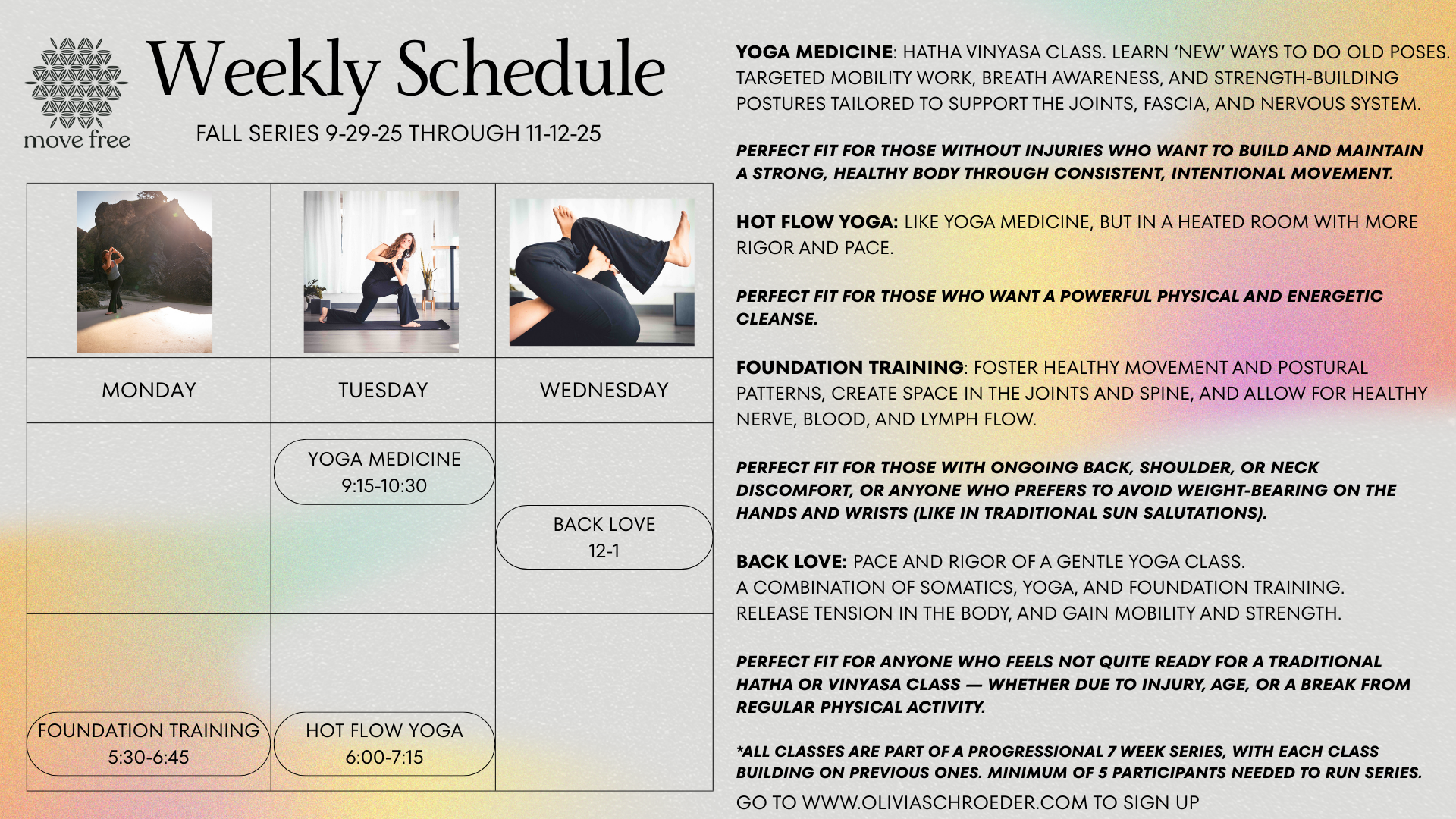Each session is grounded in modern science and ancient wisdom, designed to support long-term health and well-being. You'll move through targeted mobility work, breath awareness, and strength-building postures, tailored to support the joints, fascia, and nervous system.
